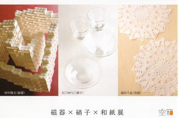 銀座・手仕事直売所(終了) 2011年9月15日(木)〜26(月) 松屋銀座8階イベントスクエア ホームページ *前期9月15日(木)-20日(火)に出店いたします 松屋銀座 東京都中央区銀座3-6-1 HP 03-3567-1211(大代表) ![]() spiral market selection vol.224 mizu no oto (終了) 2011年7月29日(金)ー8月25日(木) 東京都港区南青山5-6-23 スパイラル2F ホームページ tel 03-3498-5792(スパイラルマーケット) [ガラス] 井上美樹 木下宝 久保裕子 ヒラマジュンコ 古田真紀 みずのみさ 鷲塚かおる [和紙] 森田千晶 ![]() クラフトフェアまつもと 2011 (終了) 2011年5月28日(土) 11:00〜17:00、 29(日) 9:00〜17:00 長野県松本市 あがたの森公園 主催:松本クラフト推進協会 ホームページ 出展者名簿はこちら ( PDF ) ![]() 磁器×硝子×和紙展 (終了) 2011年6月2日(木)ー8日(水) 12:00-19:00(最終日17:00まで)/会期中無休 空箱 ギャラリーソラノハコ ホームページ 東京都渋谷区恵比寿西2-11-7 03-5489-8882 在廊日/2(木)3(金) 田中雅文(磁器) さこうゆうこ(硝子) 森田千晶(和紙) 緻密に計算された磁器のオブジェ。硝子を通してできる光の環。 風に揺らぐ透かし和紙。 真摯に素材と向き合う作家達の深き思いをお伝えします。 ![]() NIPPON VISION 4 accessories ホームページ (終了) ※ 巡回展は開催中 日程は下記参照 2011年4月6日(水)ー11日(月) 10時ー19時 (最終日は16時まで) 伊勢丹新宿店本館6階 催事場 入場無料 東京都新宿区新宿3-14-1 03-3352-1111 会場ホームページ ![]()